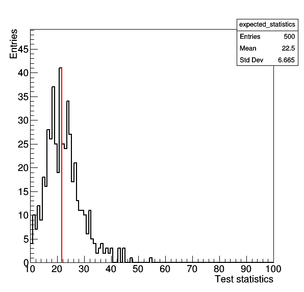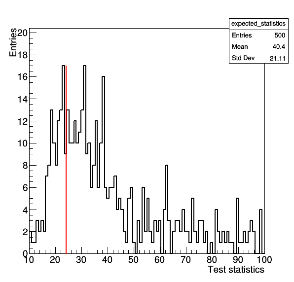 Note that you can also split this calculationg into several separate runs (remembering to set a random seed -s -1 each time the above command is run) and hadd the resulting .root output files into a single file toys.root. This can then be read in and used to calculate \(p_{\vec{\mu}}\) by using the same command as above but replacing the option --saveHybridResult with --readHybridResult --toysFile toys.root.