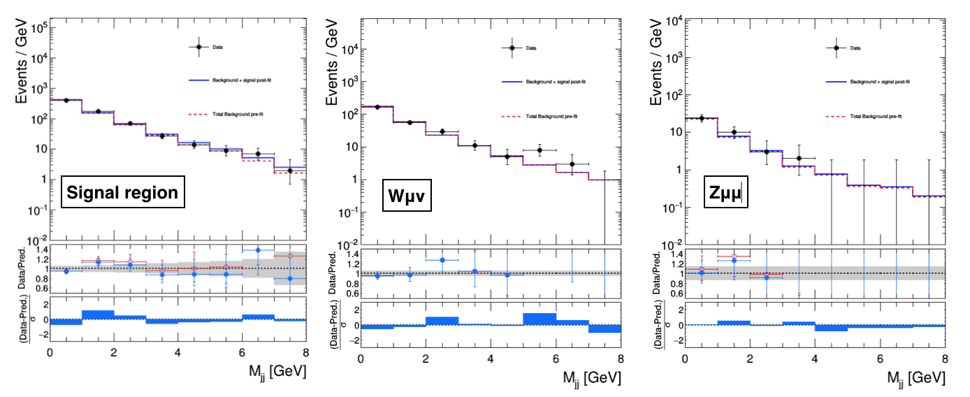 The significance of a result is calculated using a ratio of profiled likelihoods, one in which the signal strength is set to 0 and the other in which it is free to float. The evaluated quantity is \(-2\ln[\mathcal{L}(\mu=0,\hat{\hat{\nu}}(0))/\mathcal{L}(\hat{\mu},\hat{\nu})]\), in which the nuisance parameters are profiled separately for \(\mu=\hat{\mu}\) and \(\mu=0\).